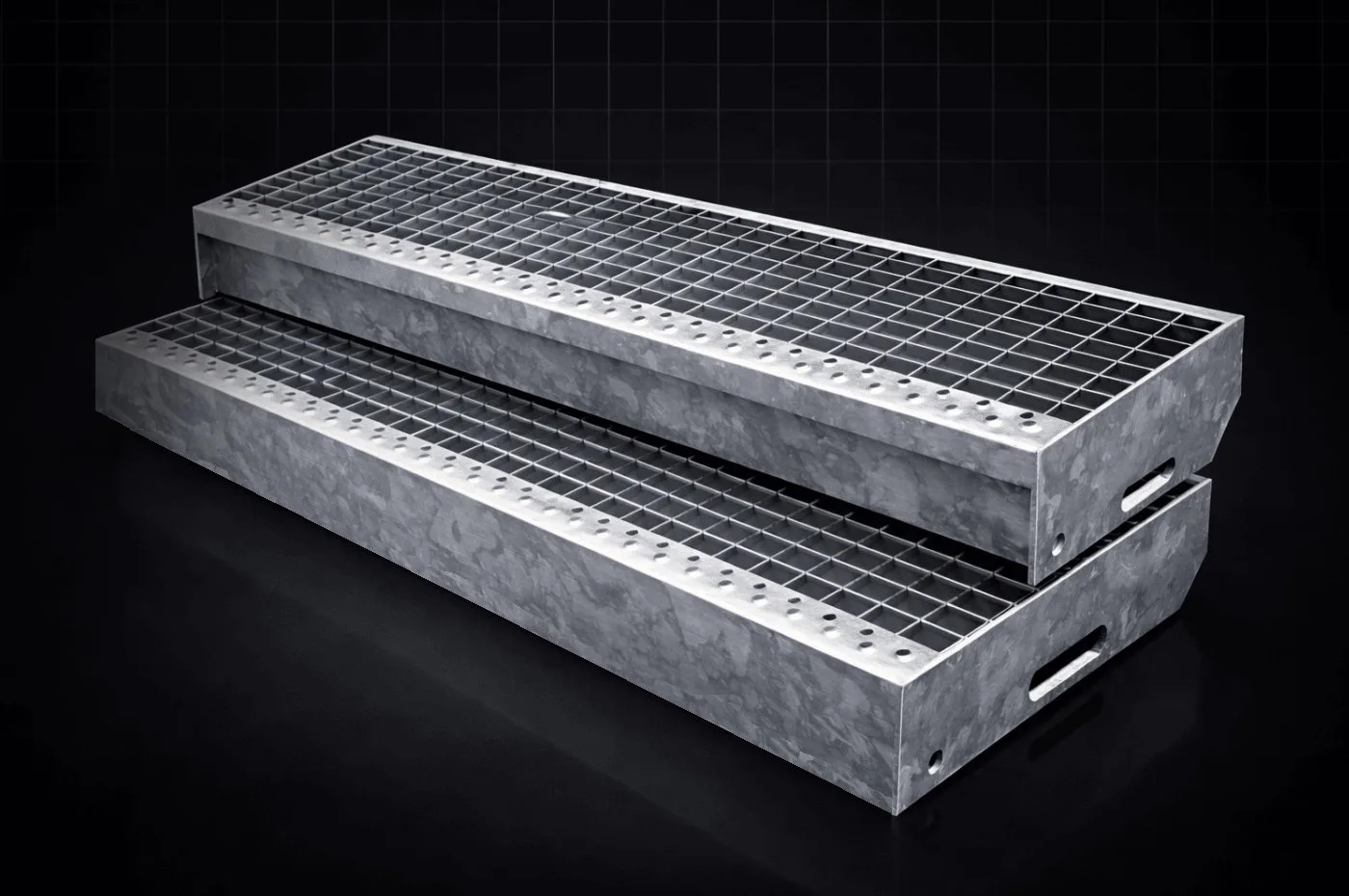 Gitterroststufe Treppenstufe Maße: 800x305 mm 30/10 mm S235JR (St37-2), im Vollbad feuerverzinkt